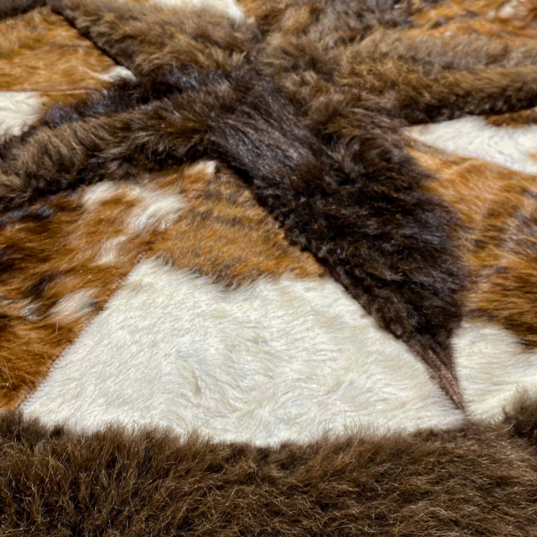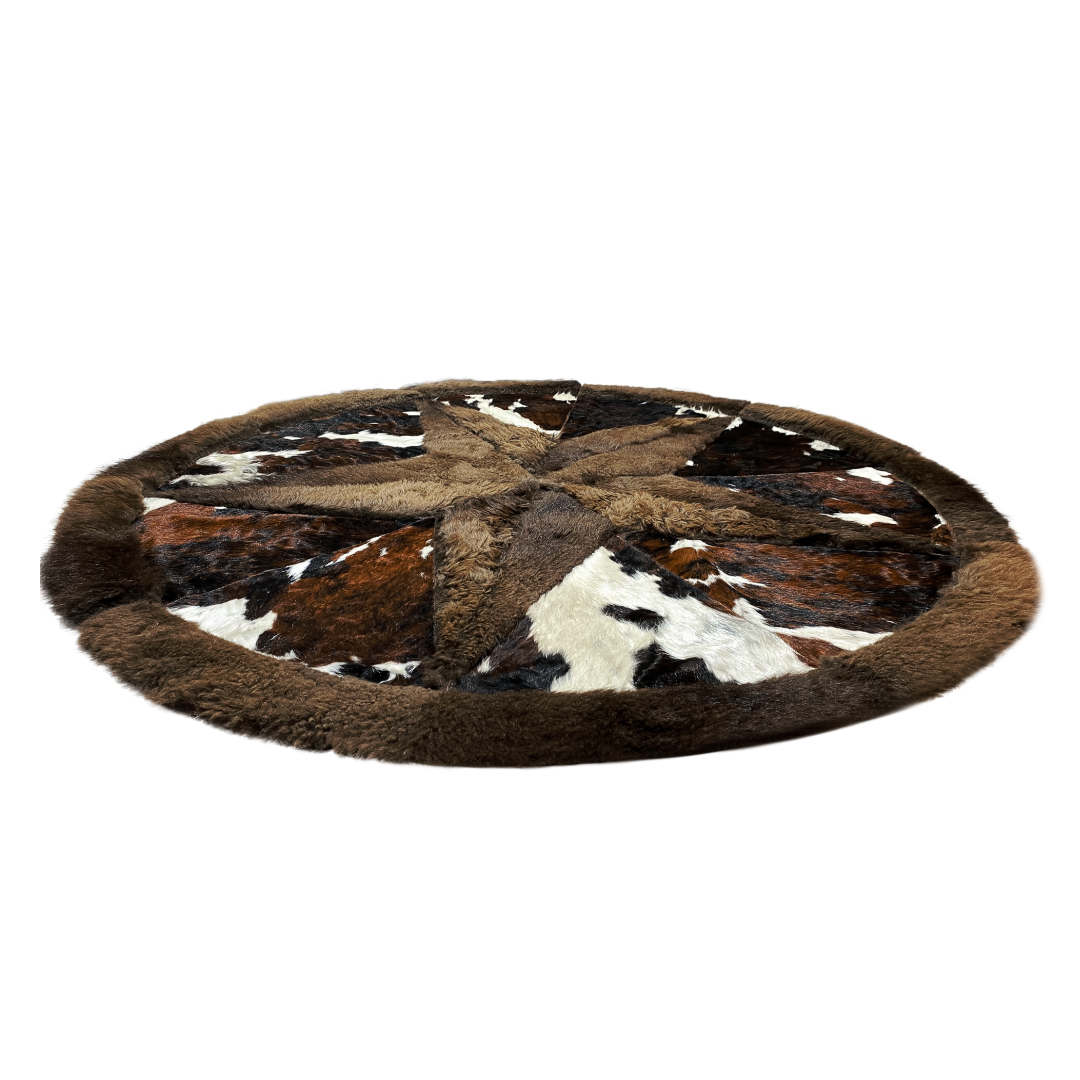 Add timeless elegance to your space with the Cowhide/Bison Hair-On Round Rug, featuring a striking star patchwork design. Handcrafted from authentic cowhide and bison leather, this rug blends rugged durability with natural beauty, offering a soft hair-on texture and a truly one-of-a-kind look.